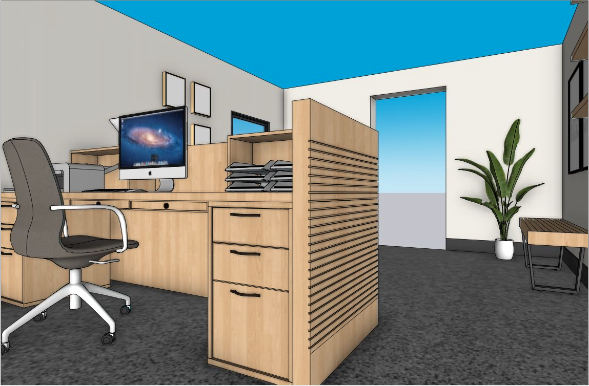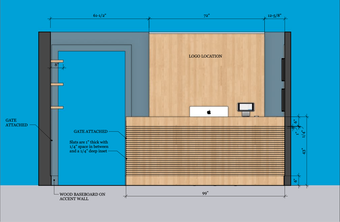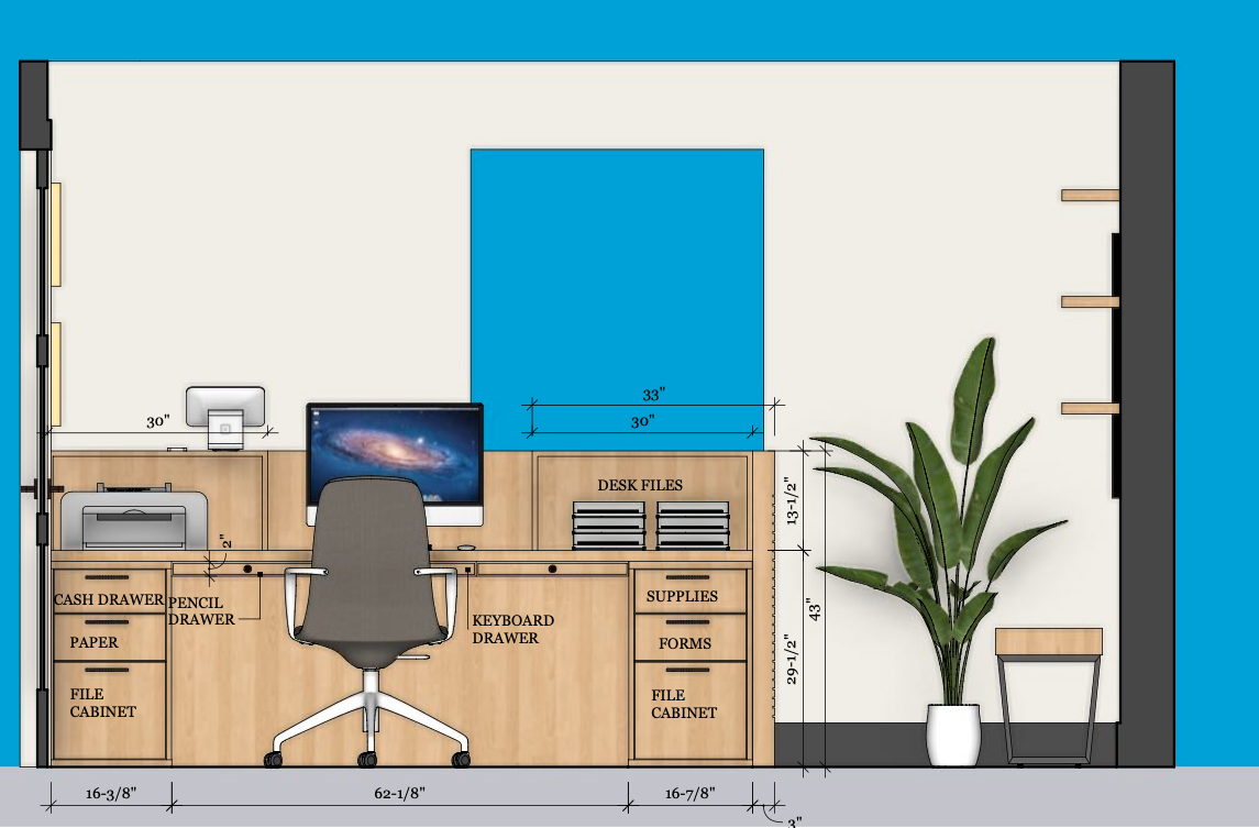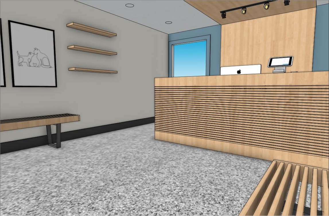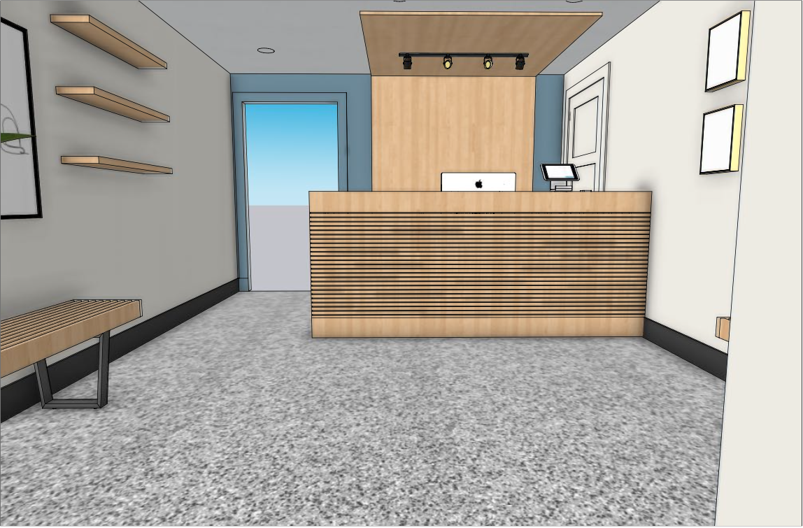 A welcoming environment is essential for clients to enjoy this lobby and feel at ease. The custom reception desk is designed to look stunning and engineered to function exceptionally well, while the colors and hues reflect the community, bringing warmth to the space.