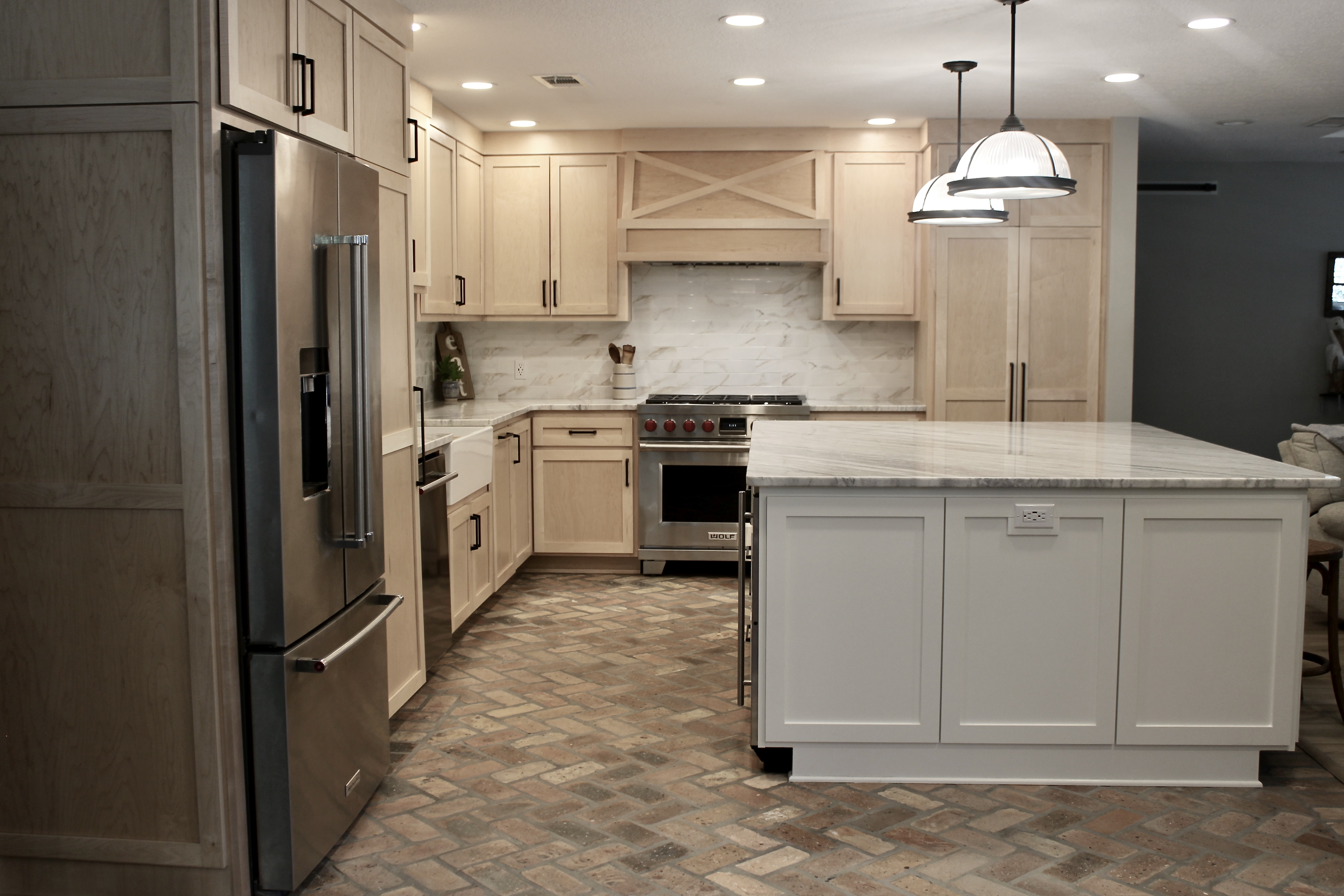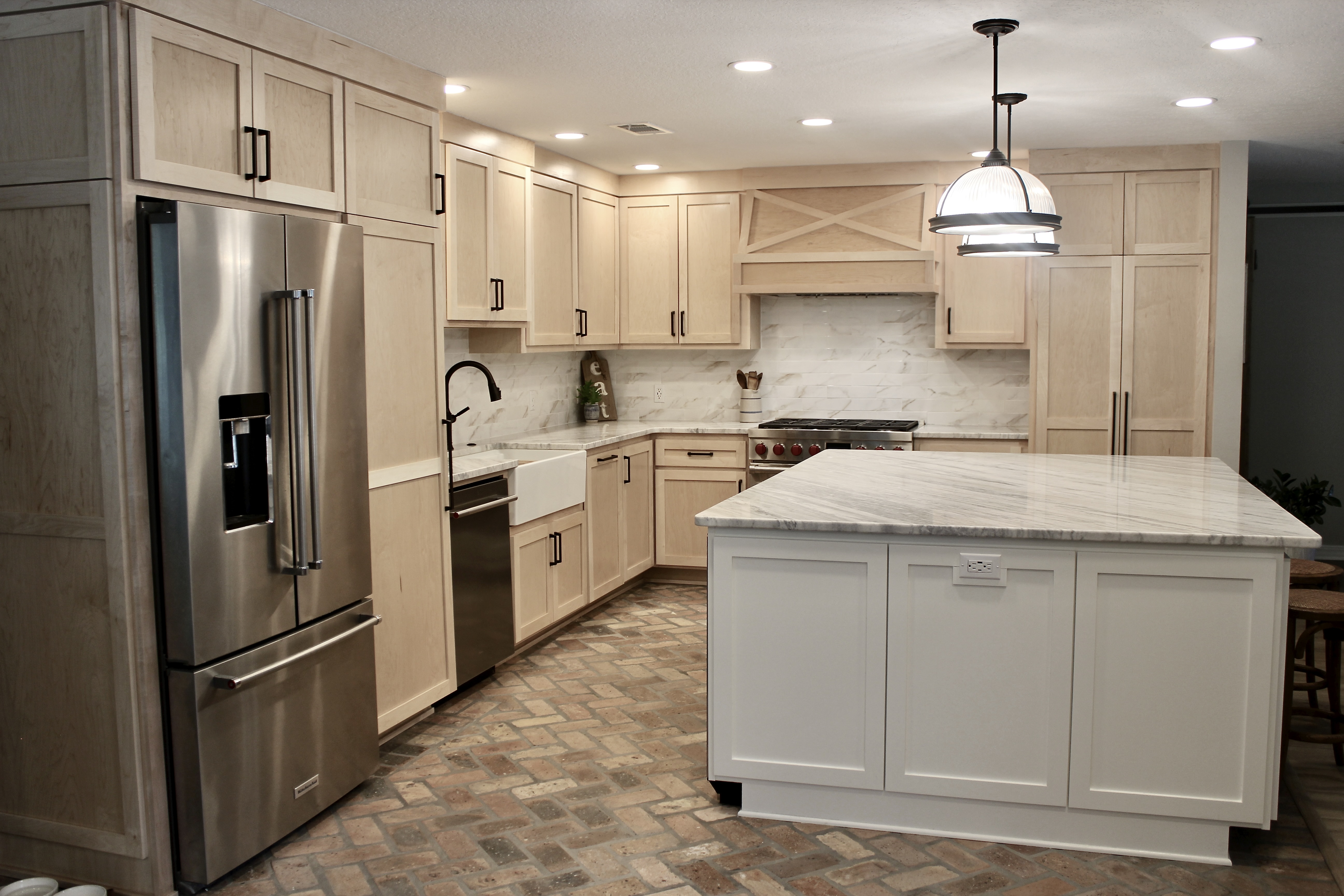 What was once a boxed-in, tired kitchen is now the heart of the home for an incredible couple. By opening up the space, adding a large island, and rethinking storage, this kitchen was transformed into something both beautiful and highly functional.