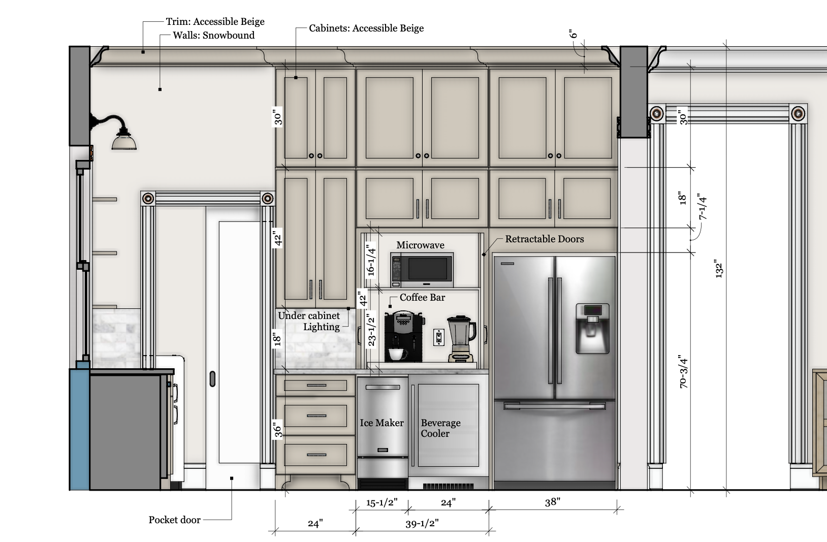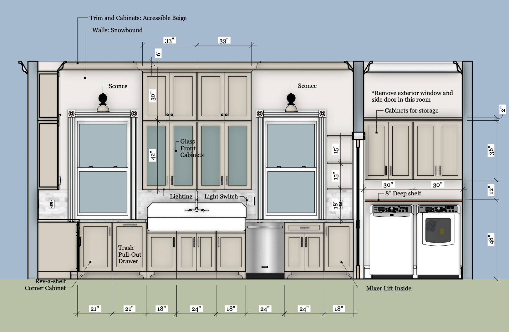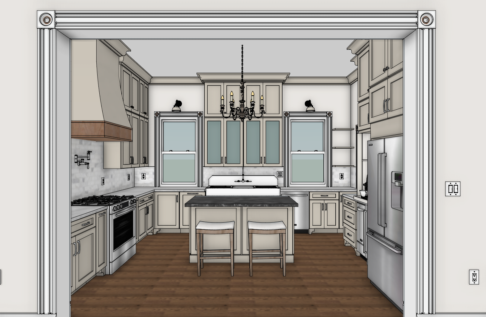 A glimpse at some renderings and elevations from a recent project – reimagining a 100 year old kitchen with thoughtful modern updates, all while honoring the home’s historic character.