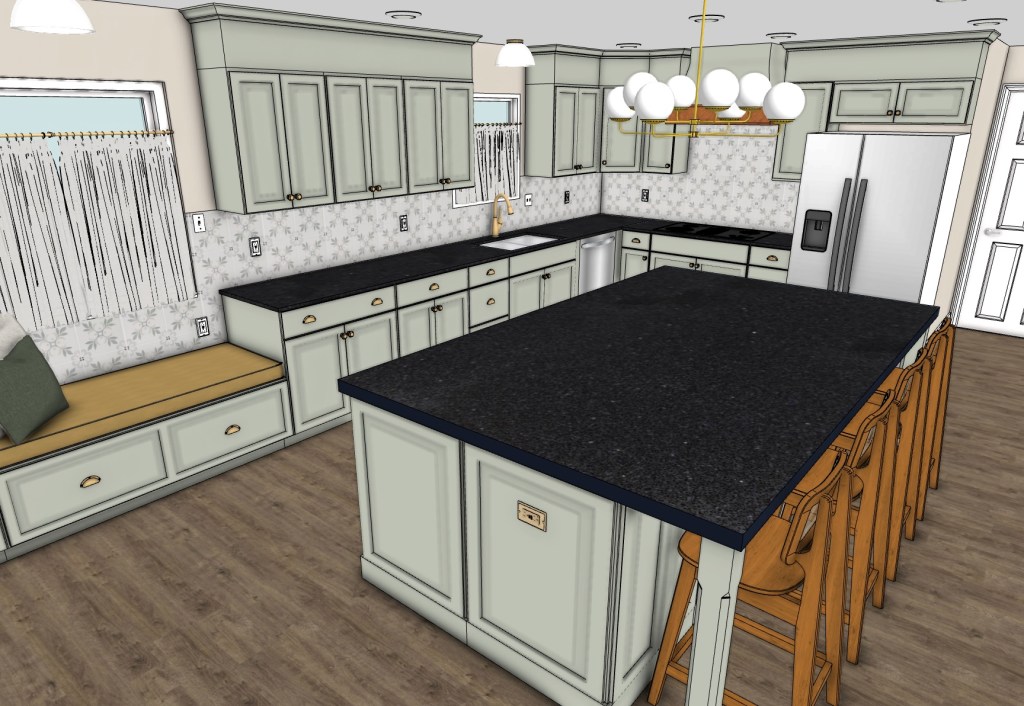 This kitchen originally had a large 10’ peninsula that split the space into a kitchen and breakfast nook. To maximize openness and create a truly great place to gather, I reimagined the layout—removing the peninsula, repurposing existing cabinetry, and introducing a stunning 9’ double island with plenty of seating and smart storage.
